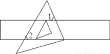 如图,把等腰直角三角尺的直角顶点放在直尺的一边上,则∠1+∠2=______.