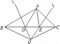 如图,在△ABC中,AB边的垂直平分线l1交BC于点D,AC边的垂直平分线l2交BC于点E,l1与l2相交于点O,连接0B,OC,若△ADE的周长为6cm,△OBC的周长为16cm.