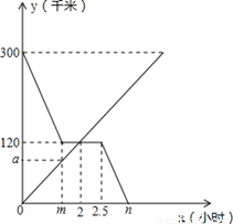 甲、乙两车分别从A,B两地同时出发相向而行.并以各自的速度匀速行驶,甲车途径C地时休息一小时,然后按原速度继续前进到达B地;乙车从B地直接到达A地,如图是甲、乙两车和B地的距离y(千米)与甲车出发时间x(小时)的函数图象.
