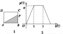 如图1,小明在长方形ABCD边上,以2米/秒的速度从点B经点C、D走到点A.小明行走时所在位置到边AB的距离y(米)与他离开点B的时间t(秒)的关系如图2所示.
