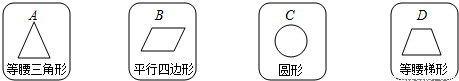有四张背面相同的纸牌A、B、C、D,其正面分别画有四个不同的几何图形(如图).小华将这4张纸牌背面朝上洗匀后任意摸出两张.