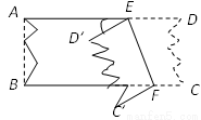 如图,小章利用一张左、右两边已经破损的长方形纸片 ABCD 做折纸游戏,他将纸片沿EF折叠后,D、C两点分别落在D′、C′的位置,并利用量角器量得∠EFB =65°,则∠AED′等于_______。