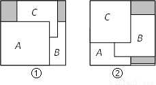 把三张大小相同的正方形卡片 A,B,C叠放在一个底面为正方形的盒底上,底面未被卡片覆盖的部分用阴影表示,若按图①摆放时,阴影部分的面积为S1;若按图②摆放时,阴影部分的面积为S2,则Sl____S2