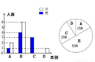 (3)从被调查的A类和D类学生中分别选取一位同学进行“一对一”互助学习,请求出所选两位同学恰好是一位男同学和一位女同学的概率.