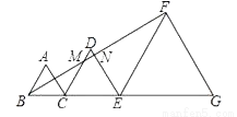 如图,△ABC、△DCE、△FEG为等边三角形,边长分别为2、3、5,且从左至右如图排列,连接BF,交DC、DE分别于M、N两点,则△DMN的面积为______.