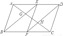 如图,在?ABCD中,E、F分别为边AD、BC的中点,对角线AC分别交BE,DF于点G、H.求证:AG=CH.
