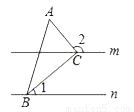如图,直线m∥n,△ABC的顶点B,C分别在直线n,m上,且∠ACB=90°,若∠1=40°,则∠2的度数为