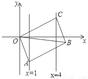 如图,已知?OABC的顶点A、C分别在直线x=1和x=4上,O是坐标原点,则对角线OB长的最小值为__.