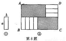 将7张如图①所示的长为a、宽为b(a>b)的小长方形纸片,按如图②所示的方式不重叠地放在长方形ABCD内,未被覆盖的部分(两个长方形)用阴影表示,设左上角与右下角的阴影部分的面积之差为S,当BC的长度变化时,按照同样的放置方式,S始终保持不变,则a、b应满足( )