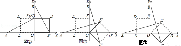 在平面直角坐标系中,O为原点,点A(﹣2,0),点B(0,2),点E,点F分别为OA,OB的中点.若正方形OEDF绕点O顺时针旋转,得正方形OE′D′F′,记旋转角为α.