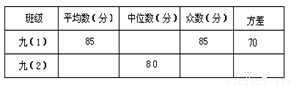 某中学开展某项比赛活动,九年级(1)、(2)班根据初赛成绩,各选出5名选手参加复赛,两个班各选出的5名选手的复赛成绩(满分为 100分)如下图所示: