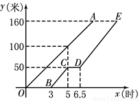 甲、乙两工程队维修同一段路面,甲队先清理路面,乙队在甲队清理后铺设路面.乙队在中途停工了一段时间,然后按停工前的工作效率继续工作.在整个工作过程中,甲队清理完的路面长y(米)与时间x(时)的函数图象为线段OA,乙队铺设完的路面长y(米)与时间x(时)的函数图象为折线BC-CD-DE,如图所示,从甲队开始工作时计时.