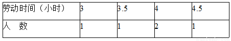 某小组5名同学在一周内参加家务劳动的时间如下表所示,关于“劳动时间”的这组数据,以下说法正确的是( )