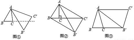 将△ABC绕点A按逆时针方向旋转θ度,并使各边长变为原来的n倍,得△AB′C′ ,如图①所示,∠BAB′ =θ,