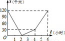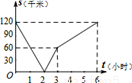 已知A、B两地相距120千米,甲骑自行车以20千米/时的速度由起点A前往终点B,乙骑摩托车以40千米/时的速度由起点B前往终点A.两人同时出发,各自到达终点后停止.设两人之间的距离为s(千米),甲行驶的时间为t(小时),则下图中正确反映s与t之间函数关系的是( )