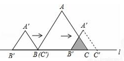 如图,边长为2的等边△ABC和边长为1的等边△A′B′C′,它们的边B′C′,BC位于同一条直线l上,开始时,点C′与B重合,△ABC固定不动,然后把△A′B′C′自左向右沿直线l平移,移出△ABC外(点B′与C重合)停止,设△A′B′C′平移的距离为x,两个三角形重合部分的面积为y,则y关于x的函数图象是( )