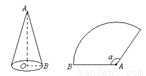 如图,圆锥的底面半径OB为10cm,它的展开图扇形的半径AB为30cm,则这个扇形的圆心角a的度数为____________.