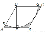 如图,在边长为6的菱形ABCD中,∠DAB=60°,以点D为圆心,菱形的高DF为半径画弧,交AD于点E,交CD于点G,则图形阴影部分的面积是___________________.