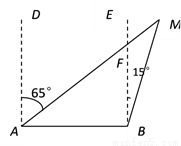 如图,一艘轮船在A处看见巡逻艇M在其北偏东65°的方向上,此时一艘客船在B处看见巡逻艇M在其北偏东15°的方向上,则此时从巡逻艇上看这两艘船的视角∠AMB=_________.