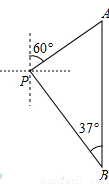 处出发,沿北偏东60°划行300米到达A处,接着向正南方向划行一段时间到达B处.在B处小亮观测妈妈所在的P处在北偏西37°方向上,这时小亮与妈妈相距多少米(精确到1米)?(参考数据: