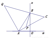 如图,直线m与直线n互相垂直,垂足为O,A、B两点同时从点O出发,点A沿直线m向左运动,点B沿直线n向上运动.