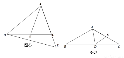 ,点D在BC所在的直线上,点E在射线AC上,且
