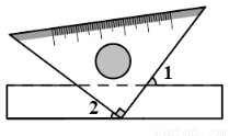 如图,将三角板的直角顶点放在直尺的一边上,若∠1=60°,则∠2的度数为____