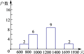 (3)请估计该居民小区家庭属于中等收入(大于1000不足1600元)的大约有多少户?