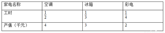 某家电生产企业根据市场调查分析,决定调整产品生产方案,准备每周(按120个工时计算)生产空调、冰箱、彩电共360台,且彩电至少生产60台,已知生产这些家电产品每台所需工时和每台产值如下表: