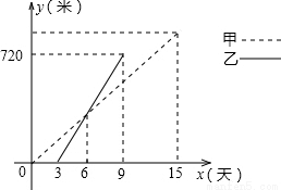 在社会主义新农村建设中,某农场决定对A、B两个作业站之间的公路进行改造,并有甲工程队从A作业站向B作业站方向修筑,乙工程队从B作业站向A作业站方向修筑.已知甲工程队先施工3天,乙工程队再开始施工.乙工程队施工几天后因另有任务提前离开,余下的任务有甲工程队单独完成,直到公路修通.下图是甲乙两个工程队修公路的长度y(米)与施工时间x(天)之间的函数图象,请根据图象所提供的信息解答下列问题: