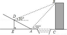 如图,某中学数学活动小组在学习了“利用三角函数测高”后.选定测量小河对岸一幢建筑物BC的高度.他们先在斜坡上的D处,测得建筑物顶的仰角为30°.且D离地面的高度DE=5m,坡底EA=10m,然后在A处测得建筑物顶B的仰角是50°,点E、A、C在同一水平线上,求建筑物BC的高.(结果保留整数,参考数据tan50°=1.1918,cos50°=0.6428)