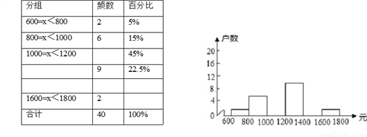 小龙在学校组织的社会调查活动中负责了解他所居住的小区450户居民的家庭收入情况.他从中随机调查了40户居民家庭收入情况(收入取整数,单位:元),并绘制了如下的频数分布表和频数分布直方图.