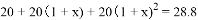 兴化市“菜花节”观赏人数逐年增加,据有关部门统计,2015年约为20万人次,2017年约为28.8万人次,设观赏人数年均增长率为x,则下列方程中正确的是( )