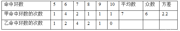 甲、乙两名同学进行射击练习,在相同条件下各射靶10次,将射击结果作统计如下: