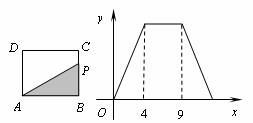 如下图,在矩形ABCD中,动点P从点B出发,沿BC,CD,DA运动至点A停止.设点P运动的路程为x,△ABP的面积为y,如果y关于x的函数图象如图所示,则△ABC的面积是( )