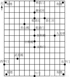 下图是利用平面直角坐标系画出的故宫博物院的主要建筑分布图,若这个坐标系分别以正东、正北方向为x轴、y轴的正方向,表示太和门的点坐标为(0,-1),表示九龙壁的点的坐标为(4,1),则表示下列宫殿的点的坐标正确的是( ).