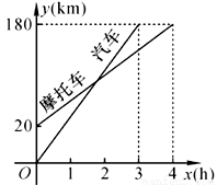 A. 摩托车比汽车晚到1h B. A、B两地的路程为20km