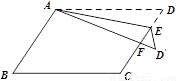 如图,在□ABCD中,E为边CD上一点,将△ADE沿AE折叠至△AD’E’ 处,AD’与CE交于点F.若∠B = 52°,∠DAE = 20°,则∠FED’的大小为_____度.