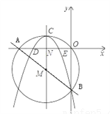 (2)若有一抛物线的对称轴平行于y轴且经过点M,顶点C在圆M上,开口向下,且经过点B,求此抛物线的函数解析式;