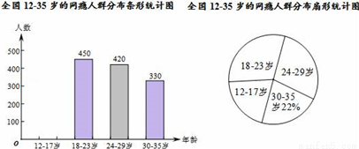 网瘾低龄化问题已经引起社会各界的高度关注,有关部门在全国范围内对12﹣35岁的网瘾人群进行了简单的随机抽样调查,绘制出以下两幅统计图.