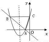已知:抛物线y=x2+4x+4+m的图像与y轴交于点C,点B与点C的纵坐标相同,一次函数y=kx+b的与二次函数交于A、B两点,且A点坐标为(-1,0).