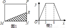 如图1,在矩形MNPO中,动点R从点N出发,沿N→P→O→M方向运动至点M处停止.设点R运动的路程为x,△MNR的面积为y,如果y关于x的函数图象如图2所示,则矩形MNPO的周长是( )