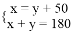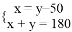 一副三角板按如图方式摆放,且∠1比∠2大50°,若设∠1=x°,∠2=y°.则可得到的方程组为( )