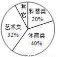 如图是七年级(1)班学生参加课外活动人数的扇形统计图,如果参加艺术类的人数是16人,那么参加其它活动的人数是________人.