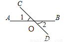 如图,直线AB、CD相交于点O,若∠1+∠2=100°,则∠BOC等于( )