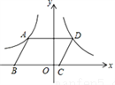 如图,在平面直角坐标系中,□ABCD的顶点B、C在x轴上,A、D两点分别在反比例函数