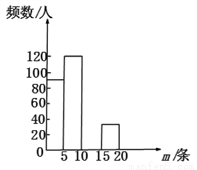 在对18-35岁的青年人每天发微博数量的调查中,随机抽查部分符合年龄条件的青年人开展每人“日均发微博条数”的调查,一个人的“日均发微博条数”为m,根据调查数据整理并制作图表如下: