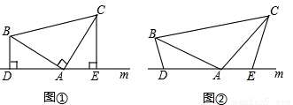 (2)如图②,将(1)中的条件改为:在△ABC中,AB=AC,D、A、E三点都在直线m上,并且有∠BDA=∠AEC=∠BAC=α,其中α为任意钝角.请问结论DE=BD+CE是否成立?如成立,请你给出证明;若不成立,请说明理由.