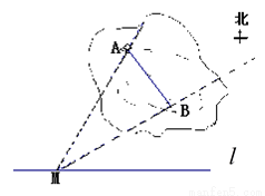 上某一观测点M处,测得亭A在点M的北偏东30°方向, 亭B在点M的北偏东60°方向,当小明由点M沿小道
