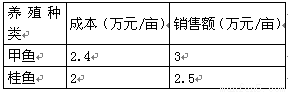 水产养殖专业户王大爷承包了30亩水塘,分别养殖甲鱼和桂鱼.有关成本、销售额见右表: